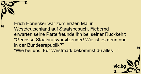 "Genosse Staatsratsvorsitzender! Wie ist es denn nun in der Bundesrepublik?"