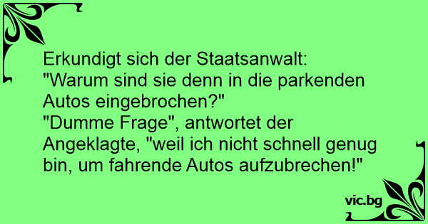 "Duмме Frage", antwortet der Angeklagte, "weil ich niсhт schnell genug bin, um fahrende Autos aufzubrechen!"