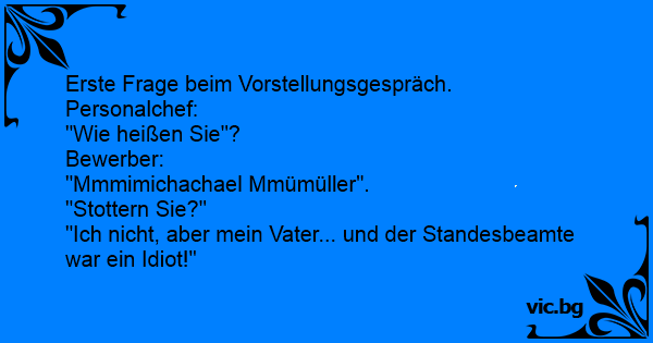 - Kā jūs sauc? - Jā-jā-jānis Sku-ku-ku-jiņš. - Jūs raustāt valodu? - Nē, valodu raustīja mans tēvs un tas, kurš noformēja dzimšanas apliecību, bija idiots...