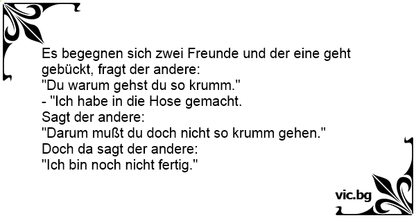 Es begegnen sich zwei Freunde und der eine geht gebückt, fragt der andere: