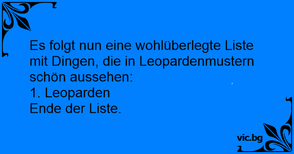 Es folgt nun eine wohlüberlegte Liste mit Dingen, die in Leopardenmustern schön aussehen: