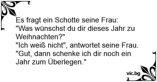 Es fragt ein Schotte seine Frau: