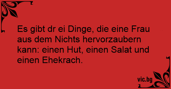 Es gibt dr ei Dinge, die eine Frau aus dem Nichts hervorzaubern kann: einen Hut, einen Salat und einen Ehekrach.