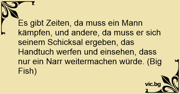 Es gibt Zeiten, da muss ein Mann kämpfen, und andere, da muss er sich seinem Schicksal ergeben, das Handtuch werfen und einsehen, dass nur ein Narr weitermachen würde. (Big Fish)