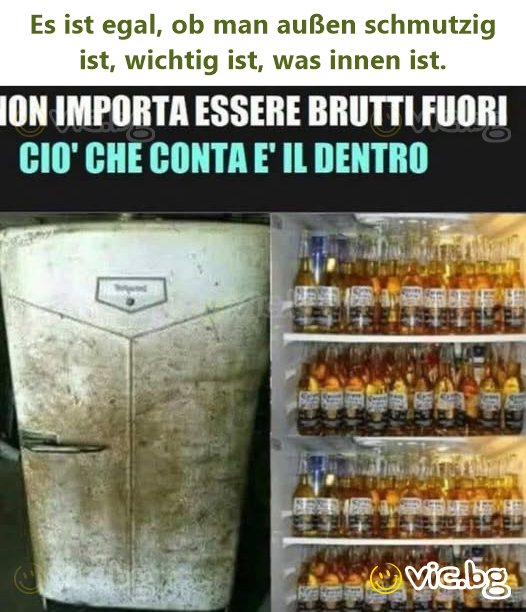 Няма значение дали си мръсен отвън, важното е какво има вътре. Не е важно дали си валкан однадвор, важно е што има внатре. It doesn’t matter if you’re dirтy on the outside, what matters is what’s inside. No importa estar sucio por fuera, lo importante es lo que hay dentro. Неважно, грязный ли ты снаружи, важно то, что внутри. Peu importe d’être sale à l’extérieur, l’important est ce qu’il y a à l’intérieur. Δεν έχει σημασία αν είσαι βρώμικος απ’ έξω, σημασία έχει τι υπάρχει μέσα. Non importa essere sporchi fuori, l’importante è ciò che c’è dentro. Dışının kirli olması önemli değil, önemli olan içindekidir. Неважливо, якщо ти брудний зовні, важливо те, що всередині. Não importa estar sujo por fora, o importante é o que há dentro. Nie ma znaczenia, że jest brudno na zewnątrz, liczy się to, co jest w środku. Det spelar ingen roll om det är smutsigt på utsidan, det viktiga är vad som finns inuti. Het maakt niet uit als het van buiten vies is, het gaat erom wat erin zit. Det er ligegyldigt, om det er beskidt udenpå, det vigtige er, hvad der er indeni. Det spiller ingen rolle om det er skittent utenpå, det som betyr noe er hva som er inni. Ei ole väliä, jos se on likainen ulkoa, tärkeintä on se, mitä on sisällä. Nem számít, ha kívül koszos, az számít, mi van belül. Nu contează dacă e murdar pe dinafară, important e ce se află înăuntru. Nezáleží na tom, že je to zvenku špinavé, důležité je, co je uvnitř. Nesvarbu, jei išorė purvina, svarbiausia – kas yra viduje. Nav svarīgi, ja ārpuse ir netīra, svarīgi ir tas, kas ir iekšā. Nije važno ako je izvana prljavo, važno je što je iznutra.