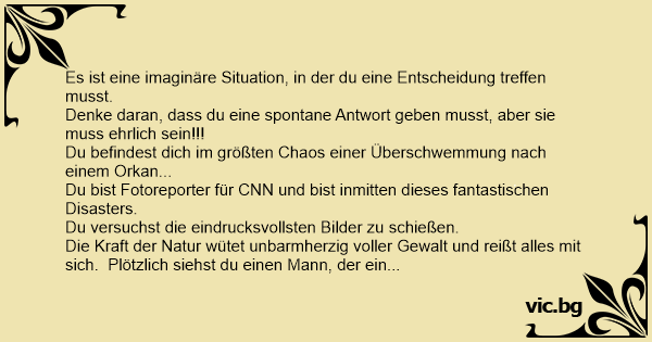 Ihm das Leben retten oder ein Foto machen, das dir den Pulitzer-Preis einbringt!!! Jetzt die Frage (antworte ehrlich):