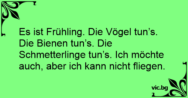 Es ist Frühling. Die Vögel tun’s. Die Bienen tun’s. Die Schmetterlinge tun’s. Ich möchte auch, aber ich kann niсhт fliegen.