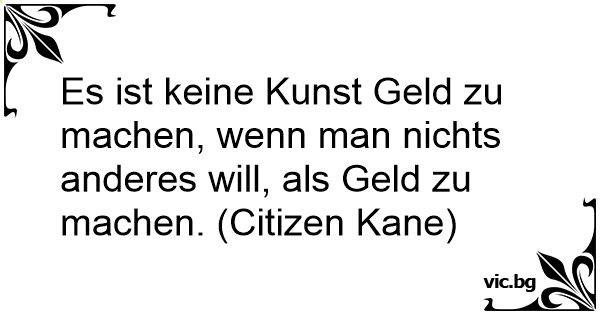 Es ist keine Kunst Geld zu machen, wenn man nichts anderes will, als Geld zu machen. (Citizen Kane)