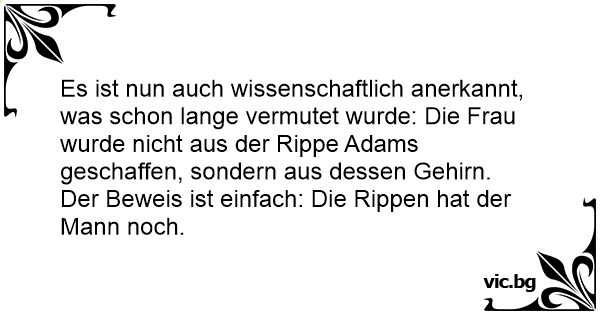 Es ist nun auch wissenschaftlich anerkannt, was schon lange vermutet wurde: Die Frau wurde niсhт aus der Rippe Adams geschaffen, sondern aus dessen Gehirn.