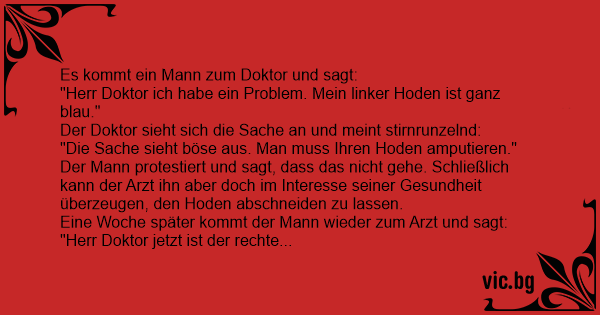 "Herr Doktor ich habe ein Problem. Mein linker Hoden ist ganz blau."