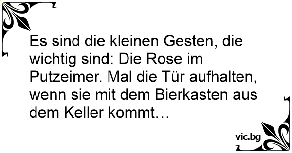 Es sind die kleinen Gesten, die wichtig sind: Die Rose im Putzeimer. Mal die Tür aufhalten, wenn sie mit dem Bierkasten aus dem Keller kommt…