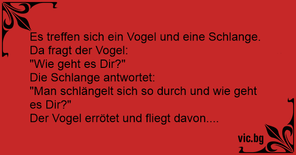 Es treffen sich ein Vogel und eine Schlange. Da fragt der Vogel: