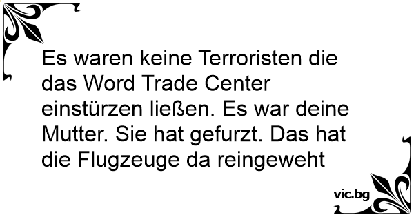 Es waren keine Terroristen die das Word Trade Center einstürzen ließen. Es war deine Mutter. Sie hat gefurzt. Das hat die Flugzeuge da reingeweht