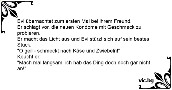 - María, me compré condones de sabores, apaga la luz y adivina el sabor. Мъж и жена решили да пробват нещо различно в леглото. Мъжът казал: Moglie e marito hanno comprato un pacchetto di preservativi con diversi sapori. - Cara, spegniamo la luce, io metto uno dei preservativi e tu devi indovinare il sapore. Appena lui spegne la luce, lei lo prende in bocca e dice: - Gorgonzola! - Aspetta un attimo, non l'ho ancora messo. "Schatz, ich hab Kondome mit Geschmack gekauft. Mach das Licht aus und errate den Geschmack!" "Sardine mit Käse!" "Warte doch wenigstens bis ich eins an hab!" O namorado comprou um monte de camisinhas com sabores diferentes e sugeriu para a moçoila: — Vou apagar a luz e colocar uma delas, vamos ver se você advinha o sabor. A luz se apaga, ela espera uns instantes, abocanha o membro do rapaz e dispara: —... Un couple, la trentaine, tente de se divertir et de rompre avec une certaine monotonie sexuelle. Le mari, pensant bien faire, achète des dizaines de préservatifs de différents parfums: vanille,... Mannen hadde kjøpt kondomer med smak, og kona var helt vill og skulle smake. "Mmm gammelost og løk" stønnet hun. "Slapp av litt" sa gubben, "jeg har ikke satt den på ennå" O sujeito estava doido para que a nova namorada lhe fizesse sexo oral e resolve ser criativo. — Meu amor — diz ele, logo que chegaram ao motel. — Hoje eu comprei umas camisinhas com sabor... você... Ein Pärchen hat sich im Sexshop Kondome gekauft, diesmal etwas ganz Besonderes: eine Riesen- Probier-Packung 50 verschiedener Kondome mit Geschmack und Geruchs-Aroma. Zuhause angekommen, eilen sie... Kupili Mujo i Fata prezervative s različitim okusima. Kad su došli kući, kaže Mujo: - "Fato, ja ću ugasiti svijetlo, stavit ću jedan od fudrina, a ti trebaš pogoditi koji je okus." Mujo ugasi...