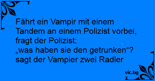 Fährt ein Vampir mit einem Tandem an einem Polizist vorbei, fragt der Polizist: