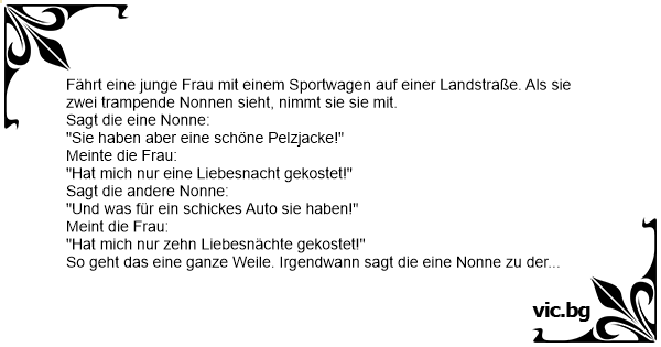 So geht das eine ganze Weile. Irgendwann sagt die eine Nonne zu der anderen: