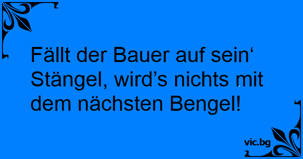 Fällt der Bauer auf sein‘ Stängel, wird’s nichts mit dem nächsten Bengel!