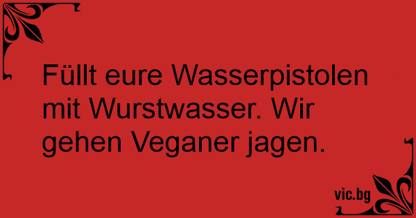 Füllt eure Wasserpistolen mit Wurstwasser. Wir gehen Veganer jagen.
