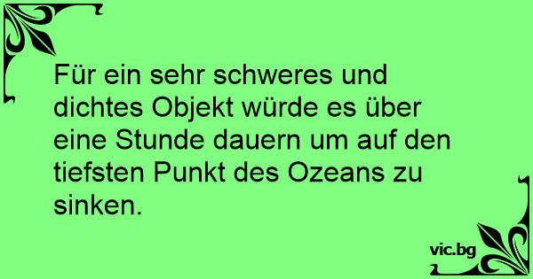 Für ein sehr schweres und dichtes Objekt würde es über eine Stunde dauern um auf den tiefsten Punkt des Ozeans zu sinken.