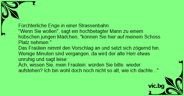 "Wenn Sie wollen", sagt ein hochbetagter Mann zu einem hübschen jungen Mädchen, "können Sie hier auf meinem Schoss Platz nehmen."