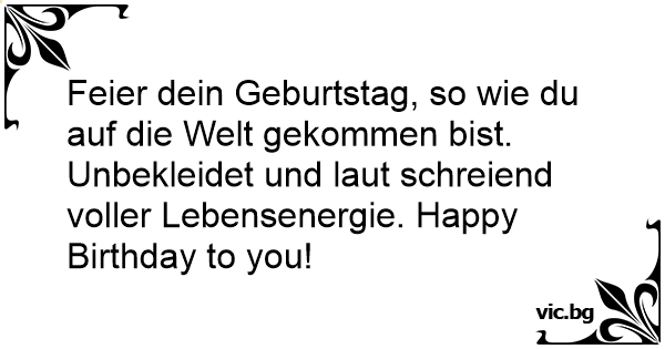 Feier dein Geburtstag, so wie du auf die Welt gekommen bist. Unbekleidet und laut schreiend voller Lebensenergie. Happy Birthday to you!