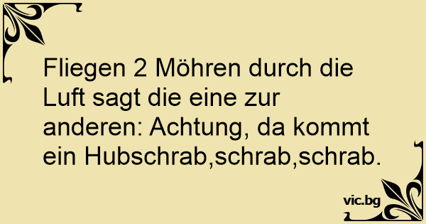 Fliegen 2 Möhren durch die Luft sagt die eine zur anderen: Achtung, da kommt ein Hubschrab,schrab,schrab.