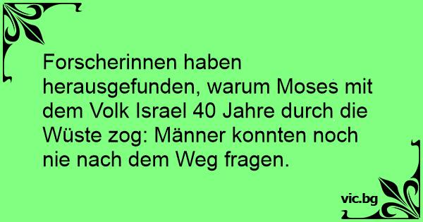 Moses Hvorfor vandrede Moses i ørkenen i 40 år? – Han ville ikke spørge om vej. Håber du kunne lide disse jokes/vittigheder om jøder. Sidder du inde med en eller flere er du velkommen til at sende...