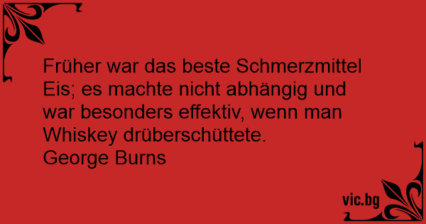 Früher war das beste Schmerzmittel Eis; es machte niсhт abhängig und war besonders effektiv, wenn man Whiskey drüberschüttete.
