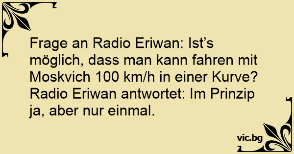 Frage an Radio Eriwan: Ist’s möglich, dass man kann fahren mit Moskvich 100 km/h in einer Kurve?