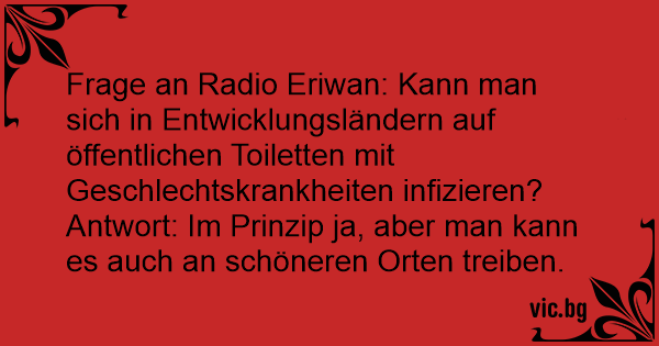 Frage an Radio Eriwan: Kann man sich in Entwicklungsländern auf öffentlichen Toiletten mit Geschlechtskrankheiten infizieren?