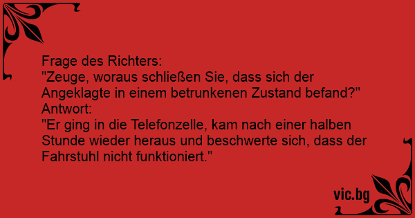"Zeuge, woraus schließen Sie, dass sich der Angeklagte in einem betrunkenen Zustand befand?"