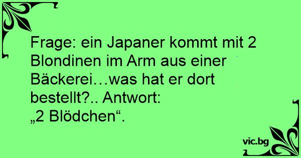 Frage: ein Japaner kommt mit 2 Blondinen im Arm aus einer Bäckerei…was hat er dort bestellt?.. Antwort: