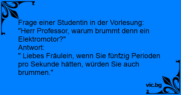 " Liebes Fräulein, wenn Sie fünfzig Perioden pro Sekunde hätten, würden Sie auch brummen."