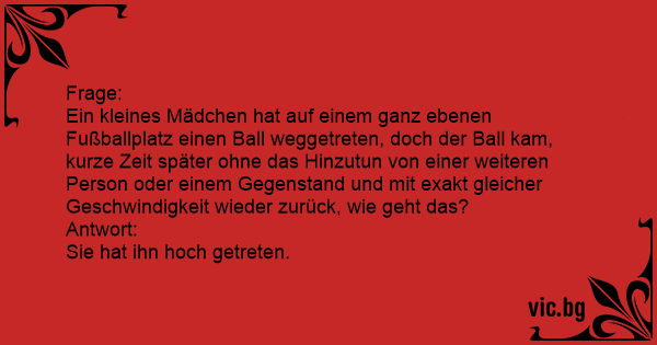 Ein kleines Mädchen hat auf einem ganz ebenen Fußballplatz einen Ball weggetreten, doch der Ball kam, kurze Zeit später ohne das Hinzutun von einer weiteren Person oder einem Gegenstand und mit exakt gleicher Geschwindigkeit wieder zurück, wie geht das?