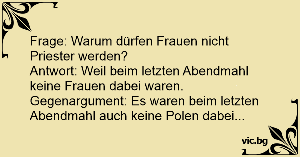 Antwort: Weil beim letzten Abendmahl keine Frauen dabei waren.
