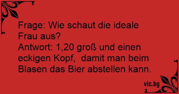Antwort: 1,20 groß und einen eckigen Kopf, damit man beim Blasen das Bier abstellen kann.