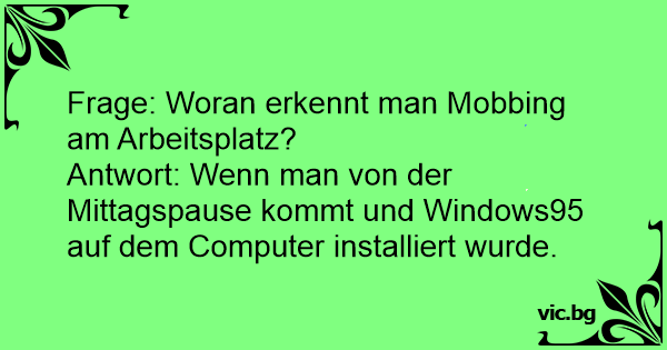 Antwort: Wenn man von der Mittagspause kommt und Windows95 auf dem Computer installiert wurde.