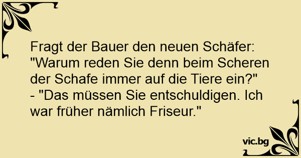 "Warum reden Sie denn beim Scheren der Schafe immer auf die Tiere ein?"