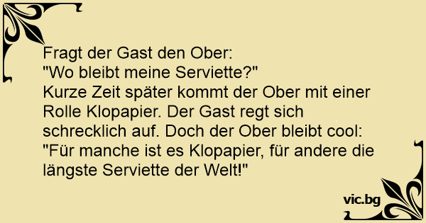 Kurze Zeit später kommt der Ober mit einer Rolle Klopapier. Der Gast regt sich schrecklich auf. Doch der Ober bleibt cool: