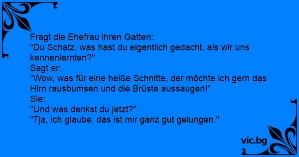"Du Schatz, was hast du eigentlich gedacht, als wir uns kennenlernten?"