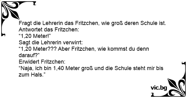 Fragt die Lehrerin das Fritzchen, wie groß deren Schule ist.