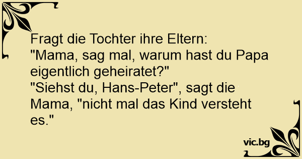 “Sag mal, Papi, warum hast du eigentlich Mami geheiratet?” “Siehst du, Ingrid, die Kinder können es auch nicht verstehen!”