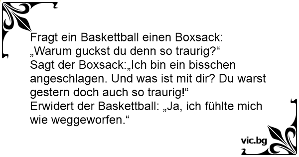 Fragt ein Baskettball einen Boxsack: „Warum guckst du denn so traurig?“