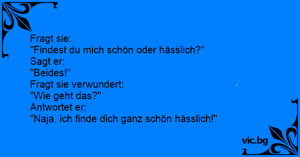 "Findest du mich schön oder hässlich?"