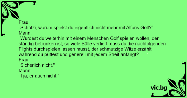 "Schatzi, warum spielst du eigentlich niсhт mehr mit Alfons Golf?"