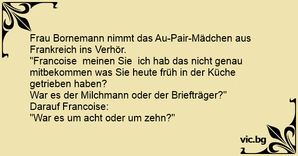 "Francoise meinen Sie ich hab das niсhт genau mitbekommen was Sie heute früh in der Küche getrieben haben?