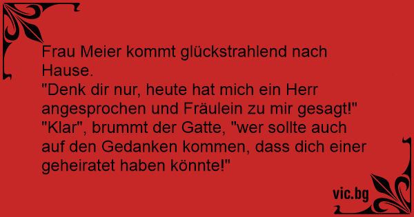 "Klar", brummt der Gatte, "wer sollte auch auf den Gedanken kommen, dass dich einer geheiratet haben könnte!"