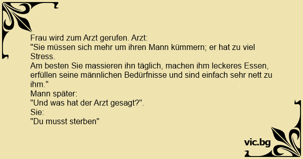 Frau wird zum Arzt gerufen. Arzt: