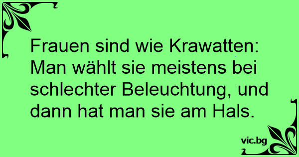 Frauen sind wie Krawatten: Man wählt sie meistens bei schlechter Beleuchtung, und dann hat man sie am Hals.