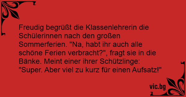 Freudig begrüßt die Klassenlehrerin die Schülerinnen nach den großen Sommerferien. "Na, habt ihr auch alle schöne Ferien verbracht?", fragt sie in die Bänke. Meint einer ihrer Schützlinge: